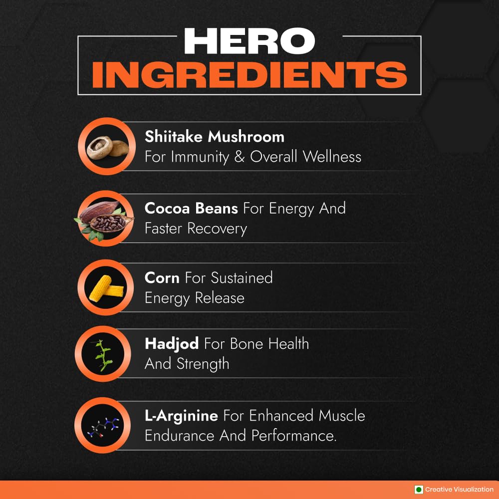 Rapid Recovery: Enriched with Shitake Mushroom and Hadjod, this blend reduces muscle fatigue and soreness, ensuring you're ready for your next session.