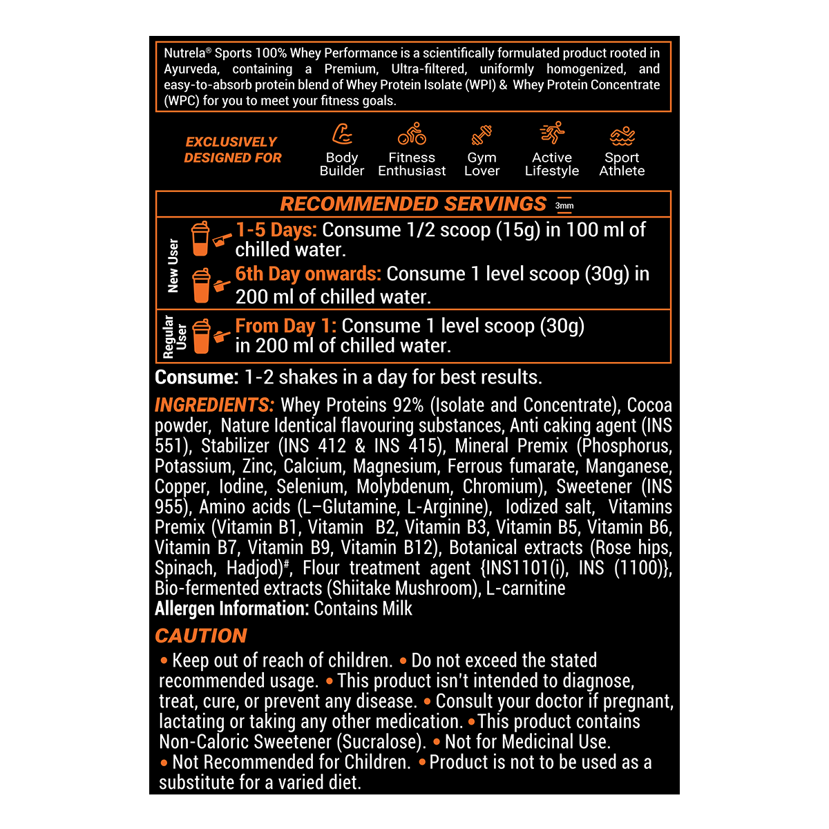 Nutrela 100% Whey Performance Powder is a high-quality, ultra-filtered blend of Whey Protein Isolate (WPI) and Whey Protein Concentrate (WPC), providing 80% protein per serving—the highest concentration available in its category. It is fortified with bio-fermented vitamins and digestive enzymes to enhance nutrient absorption and support easy digestion. This product is Informed-Choice Certified, free from banned substances, GMOs, gluten, added sugars, and artificial colors. Ideal for athletes, fitness enthusiasts of all ages, regular gym attendees, and bodybuilding professionals. Key ingredients include whey proteins, bio-fermented vitamins, minerals, digestive enzymes, and natural extracts like Hadjod, ginkgo biloba, soy, spinach, and L-glutamine.
